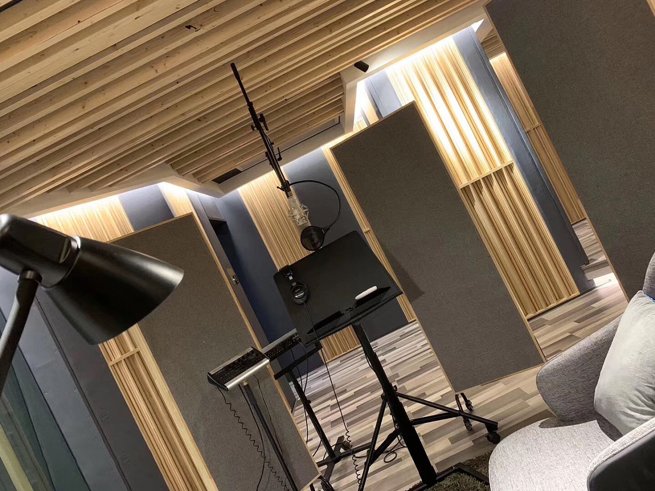 大多錄音室是用的隔音板、隔音棉、隔音氈組合隔音;再使用擴(kuò)散體和吸音板進(jìn)行建聲處理,使得聲音達(dá)到清澈干凈。隔音板的主要特點(diǎn)是保證隔聲效果。而吸音棉只能對(duì)到達(dá)吸音棉的聲波進(jìn)行緩沖和吸收,讓有吸音棉的那個(gè)平面不再有聲波反射出去,從而讓主聲波變得更“干凈”。